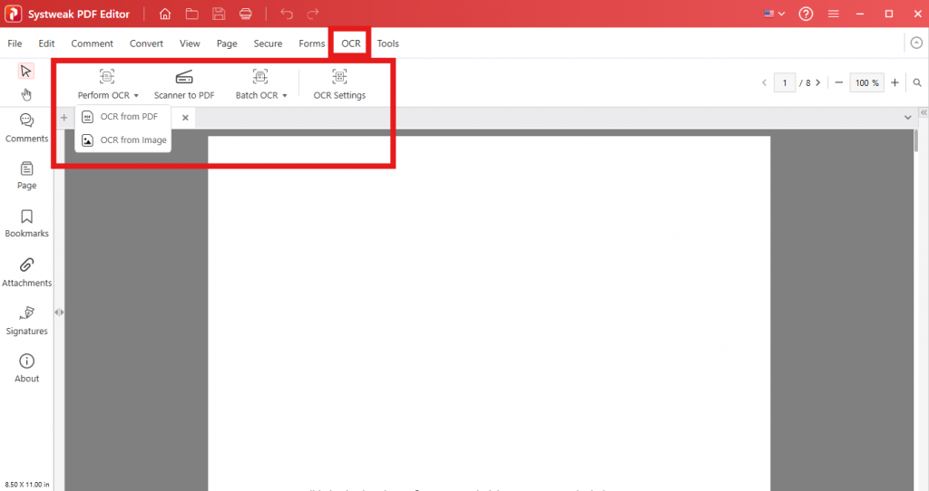 When working with OCR on Windows, it would be a massive advantage to have a PDF editor that supports OCR. Systweak PDF Editor has OCR capabilities that try to decipher text from scanned PDFs and image files.